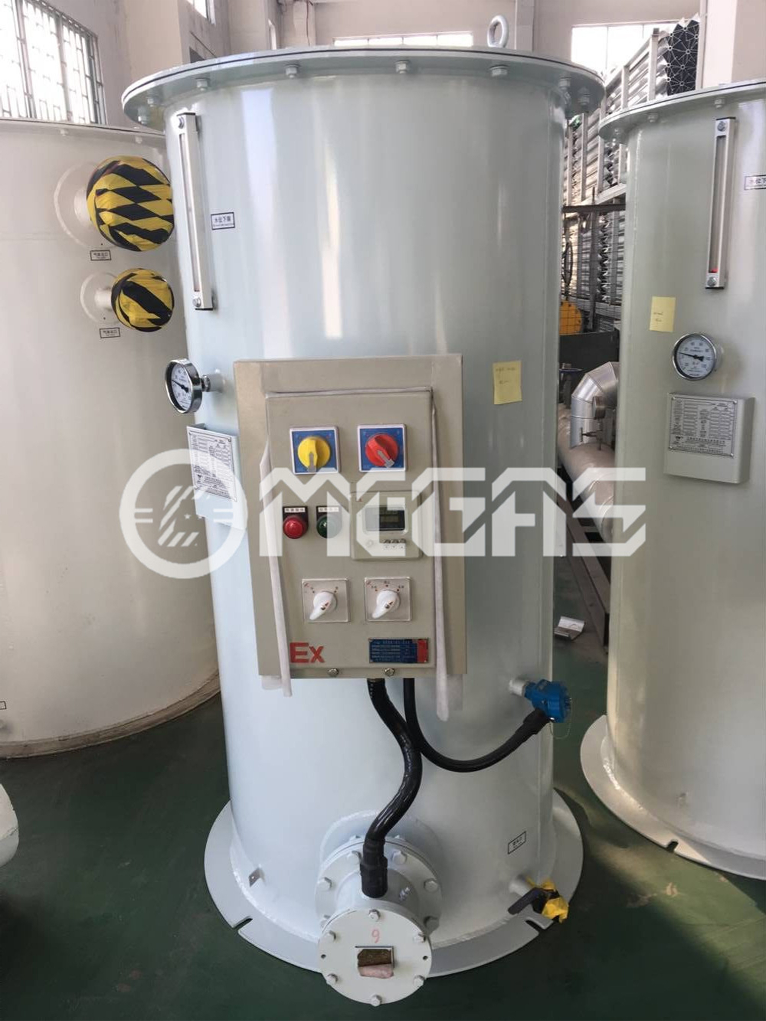 3.MEGAS(美加斯)代理水浴式汽化器,選用同行業品牌及口碑佳的供貨商。主要應用在氣化調壓撬的后續復熱階段;客戶可亦可以根據自身要求單獨購置水浴復熱(氣化)器來保證氣體的提溫,確保后續管道及使用段用氣的正常。